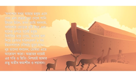 হজরত নুহ (আ.) টানা ৯৫০ বছর মানুষকে আল্লাহর পথে আহ্বান করেন। অল্প কিছু মানুষ তার আহ্বানে সাড়া দেয়। একসময় নুহ (আ.) তাদের ইমান আনার ব্যাপারে হতাশ হয়ে পড়েন। তাই তিনি আল্লাহর কাছে দোয়া করলেন, ‘হে আমার পালনকর্তা! আপনি পৃথিবীতে কোনো কাফের গৃহবাসীকে রেহাই দেবেন না। যদি আপনি তাদের রেহাই দেন, তবে তারা আপনার বান্দাদের পথভ্রষ্ট করবে এবং জন্ম দিতে থাকবে শুধু পাপাচারী, কাফের।’ (সুরা নুহ: ২৬-২৭)। আল্লাহতায়ালা নুহ (আ.)-এর দোয়া কবুল করলেন এবং অহির মাধ্যমে প্রয়োজনীয় নির্দেশনা দিলেন। আল্লাহতায়ালা বললেন, ‘তুমি একটি নৌকা তৈরি করো। এরপর যখন আমার আদেশ আসবে এবং চুল্লি প্লাবিত হবে, তখন নৌকায় তুলে নেবে প্রত্যেক জীবের এক এক জোড়া এবং তোমার পরিবারবর্গকে, তাদের মধ্যে যাদের বিপক্ষে পূর্বে সিদ্ধান্ত নেওয়া হয়েছে তাদের ছাড়া এবং তুমি জালেমদের সম্পর্কে আমাকে কিছু বলবে না। নিশ্চয়ই তারা নিমজ্জিত হবে।’ (সুরা মুমিনুন: ২৭)। নুহ (আ.) যখন নৌকা বানাতে শুরু করেন তখন সম্প্রদায়ের লোকেরা তাকে নানাভাবে তিরস্কার করতে লাগল। তারা বলত, হে নুহ! আশপাশে কোথাও তো নদীনালা নেই, তাহলে তুমি এই জাহাজ নির্মাণ করছ কেন? মাটিতেই কি জাহাজ চালাবে? তারা টিপ্পনী কেটে বলত, এতদিন ছিলে নবী, নবুয়তি ছেড়ে এখন হয়েছে কাঠমিস্ত্রি! পবিত্র কোরআনের সুরা হুদে পরপর ১২টি আয়াতে আল্লাহ সে ঘটনা মৌলিকভাবে বিবৃত করেছেন, ‘তুমি আমার চোখের সামনে আমার নির্দেশনা মোতাবেক একটা নৌকা তৈরি করো। স্বজাতির প্রতি দয়াপরবশ হয়ে জালেমদের ব্যাপারে আমাকে কোনো কথা বলো না। অবশ্যই ওরা ডুবে মরবে।’ তখন নুহ (আ.) নৌকা তৈরি শুরু করলেন। তিনি নৌকাও চিনতেন না, তৈরি করতেও জানতেন না। হজরত জিবরাইল (আ.) এসে নৌকা তৈরির প্রয়োজনীয় উপকরণ সংগ্রহ ও নির্মাণ কৌশল শিখিয়ে দিলেন। এভাবে সরাসরি ঐশী পৃষ্ঠপোষকতায় হজরত নুহ (আ.)-এর হাতে নৌকা ও জাহাজ নির্মাণ শিল্পের গোড়াপত্তন হয়। তার কওমের নেতারা যখন পাশ দিয়ে যেত, তখন তারা তাকে বিদ্রূপ করত। নুহ তাদের বললেন, ‘তোমরা যদি আমাদের উপহাস করে থাকো, তবে জেনে রেখো তোমরা যেমন আমাদের উপহাস করছ, আমরাও তোমাদের উপহাস ফিরিয়ে দেব। অচিরেই তোমরা জানতে পারবে লাঞ্ছনাকর আজাব কাদের ওপর আসে এবং কাদের ওপর নেমে আসে চিরস্থায়ী গজব।’ তারপর বর্ণিত হয়েছে, ‘অবশেষে যখন আমার হুকুম এসে গেল এবং রান্নার চুলা থেকে পানি উথলে উঠল, তখন আমি বললাম, সর্বপ্রকার জোড়ার দুটি করে এবং যাদের ওপরে পূর্বেই হুকুম নির্ধারিত হয়ে গেছে, তাদের বাদ দিয়ে তোমার পরিবারবর্গ ও সব ইমানদারকে নৌকায় তুলে নাও। নুহ তাদের বললেন, তোমরা এতে আরোহণ করো। আল্লাহর নামেই এর গতি ও স্থিতি। নিশ্চয়ই আমার প্রভু অতীব ক্ষমাশীল ও দয়াবান। অতঃপর নৌকা তাদের বহন করে নিয়ে চলল পাহাড়ের মতো তরঙ্