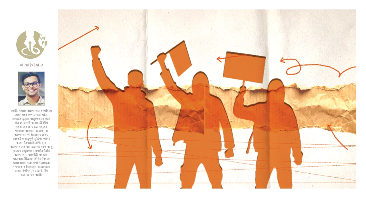 কোটা সংস্কার আন্দোলনের দাবিকে কেন্দ্র করে রূপ নেওয়া ছাত্র-জনতার চূড়ান্ত অভ্যুত্থানের ফলে গত ৫ আগস্ট আওয়ামী লীগ সরকারের প্রায় ১৬ বছরের শাসনের অবসান হয়েছে। এ আন্দোলন পরিচালনায় প্রথম থেকেই গুরুত্বপূর্ণ ভূমিকা পালন করেন বৈষম্যবিরোধী ছাত্র আন্দোলনের অন্যতম সমন্বয়ক আবু বাকের মজুমদার। সম্প্রতি তিনি আন্দোলন, অন্তর্বর্তী সরকার, ছাত্ররাজনীতিসহ বিভিন্ন বিষয়ে কালবেলার সঙ্গে কথা বলেছেন। সাক্ষাৎকার নিয়েছেন কালবেলার ঢাকা বিশ্ববিদ্যালয় প্রতিনিধি মো. জাফর আলী