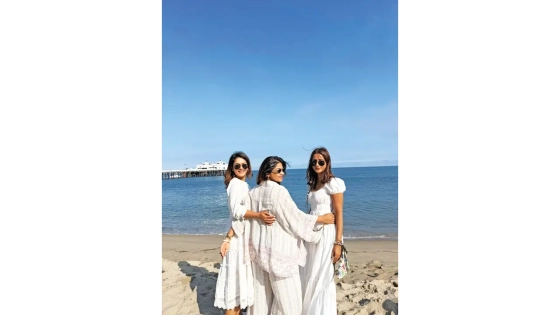 সাদা পোশাকে যেন তিনজন আধুনিক পরী এসে বসেছেন এক মেঠো জলাশয়ের ধারে। ছবির একফ্রেমে ধরা দিয়েছেন মডেল ও টিভি উপস্থাপিকা মৌসুমী মৌ, অভিনেত্রী পারশা ইভানা এবং উপস্থাপিকা ও মডেল নীল হুরেজাহান—তিনজনই নিজ নিজ অবস্থানে পরিচিত মুখ, তবে বন্ধুত্বের পরশে তারা যেন আরও উজ্জ্বল। বিনোদন জগতের পরিচিত এই তিন মুখ বর্তমানে যুক্তরাষ্ট্রে অবস্থান করছেন। ঘুরে বেড়াচ্ছেন সেখানকার জনপ্রিয় সব পর্যটন স্থান। তারই ধারাবাহিকতায় নীল তার ফেসবুক অ্যাকাউন্ট থেকে বেশ কয়েকটি ছবি শেয়ার করেছেন। যেখানে দেখা যায় নির্জন প্রকৃতির কোলে, নীল আকাশ আর সবুজ ঘাসে মোড়া পরিবেশে তারা নিজেদের মতো করে সময় কাটাচ্ছেন। ছবির স্থান—আমেরিকার ক্যালিফোর্নিয়ার লস অ্যাঞ্জেলেসের কাছে অবস্থিত একটি বিখ্যাত স্থান মালিবু বিচ। ছবি শেয়ার করে ক্যাপশনে তিনি লিখেছেন, ‘মালিবু অ্যান্ড গার্লস।’