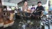 রেস্তোরাঁয় এসে খাবার খাচ্ছে মাছ