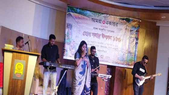 অনুষ্ঠানে সূচনা বক্তব্য দেন আমরা একাত্তরের প্রধান সমন্বয়কারী হিলাল ফয়েজী। আবৃত্তি করেন রিচি, বহ্নি, লগ্ন, রাকা, পপি, এলিজা রহমান, করবী দাস, উপমা, বাঁশি বাজিয়েছেন মকবুল। লোকসঙ্গীত পরিবেশন করেন মিজান, দিলু। ‘পৌষ পিঠা গুড়ি কুটা সুখের যন্ত্রণা’, ও ‘পৃথিবী এবার এসে বাংলাদেশ নাও ছিনে’ দুটি গানের সঙ্গে নৃত্য পরিবেশন করেন নৃত্যক্ষরের নৃত্যশিল্পীরা।