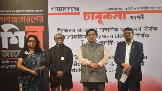 শিল্প সংস্কৃতিঋদ্ধ সৃজনশীল মানবিক বাংলাদেশ গড়ার লক্ষ্যে ‘অপ্রতিরোধ্য অগ্রযাত্রায় শিল্প নিয়ে পৌঁছে যাব আমরা উন্নতির শিখরে’- এই প্রতিপাদ্যে বাংলাদেশ শিল্পকলা একাডেমির উদ্যোগে শুরু হয়েছে গণজাগরণের শিল্প আন্দোলন। এরই ধারাবাহিকতায় ৩ শতাধিক চারুশিল্পী ও আলোকচিত্রশিল্পীর অংশগ্রহণে বাংলাদেশ শিল্পকলা একাডেমির আয়োজনে চারুকলা বিভাগের ব্যবস্থাপনায় ‘গণজাগরণের চারুকলা প্রদর্শনী ২০২৩’ আয়োজন করা হয়েছে। ‘উন্নয়নের বাংলাদেশ, নান্দনিক বাংলাদেশ’ শীর্ষক জাতীয় আলোকচিত্র প্রতিযোগিতা ও উন্নয়নের চারুশিল্প’ শীর্ষক এ চিত্রকলা প্রদর্শনী চলবে শনিবার (৩০ ডিসেম্বর) থেকে ৩১ জানুয়ারি পর্যন্ত।