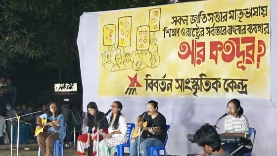শুক্রবার (২৩ ফেব্রুয়ারি) বিকেলে ভাষাশহীদ দিবস উপলক্ষে ঢাকা বিশ্ববিদ্যালয়ে সোপার্জিত স্বাধীনতা চত্বরে ‘সকল জাতিসত্তার মাতৃভাষায় শিক্ষা এবং রাষ্ট্রের সর্বস্তরের বাংলার ব্যবহার আর কতদূর?’ শীর্ষক আলোচনায় বিবর্তন সাংস্কৃতিক কেন্দ্রের পক্ষ থেকে সাধারণ সম্পাদক মফিজুর রহমান লাল্টু তা উত্থাপন করেন। তিনি বলেন, ভাষার দাবিতে জনগণের দীর্ঘ সংগ্রাম মাতৃভাষা বিকাশে এবং আমাদের দেশের জনগণকে প্রেরণা জুগিয়েছিল। তবে পরবর্তীতে এই সংগ্রামের সাফল্যসমূহ দেখা যায়নি। তাই এখনো রাষ্ট্রের বিভিন্ন স্তরে, দাপ্তরিক কিংবা উচ্চ আদালত কাজে বাংলার ব্যবহার দেখা যায় না। প্রতিটি জাতিসত্তা নিজ ভাষায় শিক্ষার অধিকার পায় না।