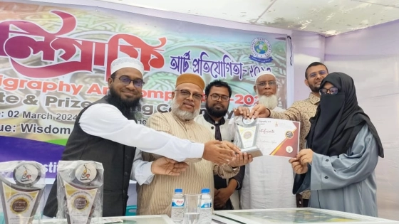 শনিবার (২ মার্চ) ধানমন্ডি সাফা ক্যালিগ্রাফি ইনস্টিটিউট অব বাংলাদেশের উদ্যোগে ‘জাতীয় ক্যালিগ্রাফি আর্ট প্রতিযোগিতা ২০২৩’ আয়োজনে অতিথিরা এসব কথা বলেন। প্রতিযোগীতায় তিন ক্যাটাগরিতে ২০জন প্রতিযোগী অংশ নেন।