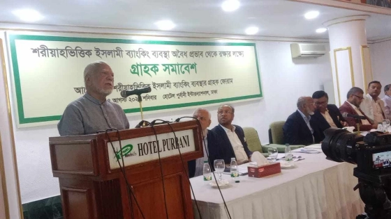 শনিবার (২৪ আগস্ট) রাজধানীর মতিঝিলের হোটেল পূর্বাণীতে শরিয়াভিত্তিক ইসলামী ব্যাংকিং ব্যবস্থা অবৈধ প্রভাব থেকে রক্ষার লক্ষ্যে আয়োজিত ‘গ্রাহক সমাবেশে’ প্রধান অতিথির বক্তব্যে তিনি এসব কথা বলেন।
