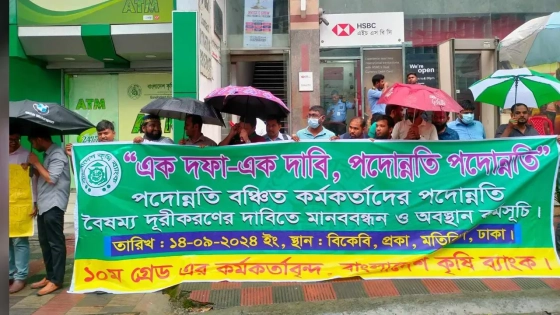 গত ২৭ আগস্ট ব্যাংকটির ব্যবস্থাপনা পরিচালক বরাবর স্মারকলিপি দিয়ে দাবির কথা জানিয়ে ৭ কর্মদিবস সময় দেওয়া হয়। কিন্তু কর্তৃপক্ষ কোনো ব্যবস্থা গ্রহণ করেনি। পরবর্তীতে পদোন্নতি দেওয়া ও পদোন্নতিতে অন্যান্য গ্রেডের সাথে বৈষম্য দূর করার লক্ষ্যে ১ দফা দাবি নিয়ে গত ১৪ সেপ্টেম্বর ব্যাংকের প্রধান কার্যালয়ের সামনে দশম গ্রেডের কর্মকর্তারা মানববন্ধন কর্মসূচি পালন করে। মানববন্ধনে উপস্থিত হয়ে সাবেক ব্যবস্থাপনা পরিচালক মো. শওকত আলী ৩ বছরে পদোন্নতি প্রদান, পদোন্নতিতে ভাইবা পদ্ধতি বাতিল করে বার্ষিক গোপনীয় প্রতিবেদনের (এসিআর) ভিত্তিতে পদোন্নতি প্রদান, সুপারনিউমেরারি পদ্ধতিতে পদোন্নতি প্রদানসহ বেশ কিছু আশ্বাস দেয়। এমডির আশ্বাসে কর্মকর্তারা মানববন্ধন কর্মসূচি প্রত্যাহার করে।