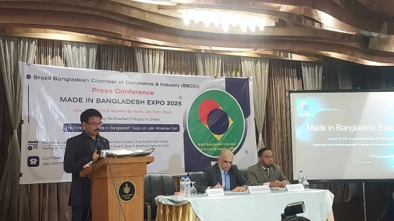 রপ্তানিযোগ্য পণ্যের প্রচার, বাজার বৈচিত্র্যকরণ, দ্বিপাক্ষিক বাণিজ্য জোরদার এবং লাতিন আমেরিকার দেশ ব্রাজিলে নেটওয়ার্কিং সহজ করার লক্ষ্যে বিবিসিসিআই চলতি বছরের ১৫-১৮ জুন ব্রাজিলের সাও পাওলোতে প্রথমবারের মতো ‘মেড ইন বাংলাদেশ এক্সপো-২০২৫’ আয়োজন করতে যাচ্ছে। এ উপলক্ষে সংবাদ সম্মেলনের আয়াজন করা হয়।