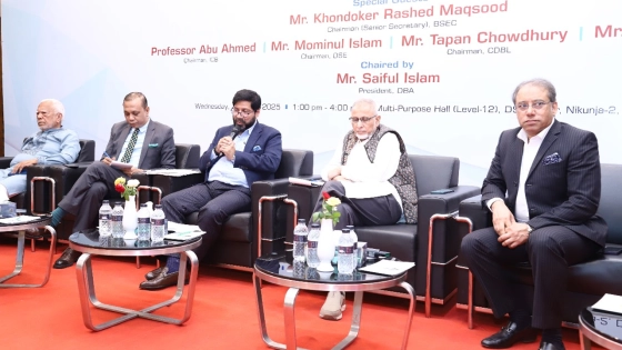 বুধবার (২৫ জুন) রাজধানীর নিকুঞ্জে ডিএসই ভবনে ‘মিট অ্যান্ড গ্রিট : ডিসকাশন অন দ্য কারেন্ট স্টেট অব বাংলাদেশ ক্যাপিটাল মার্কেট’ শীর্ষক সভায় বিশেষ অতিথির বক্তব্যে তিনি এ কথা বলেন। সভায় অতিথি হিসেবে উপস্থিত ছিলেন আইসিবি চেয়ারম্যান অধ্যাপক আবু আহমেদ, ডিএসই চেয়ারম্যান মমিনুল ইসলাম, সিডিবিএল চেয়ারম্যান তপন চৌধুরী, এফআইসিসিআই সভাপতি জাভেদ আখতার প্রমুখ। এতে সভাপতিত্ব করেন ডিবিএ সভাপতি সাইফুল ইসলাম।