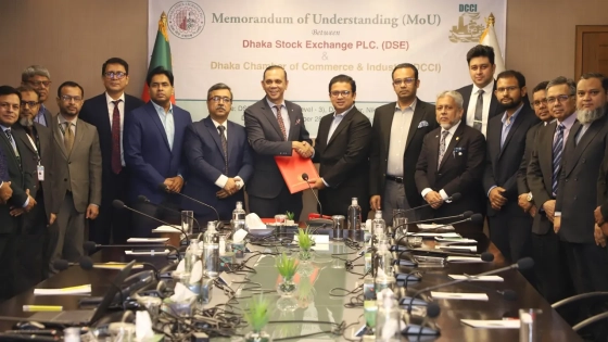 পুঁজিবাজারের উন্নয়ন, এসএমই কোম্পানির তালিকাভুক্তি, বিনিয়োগকারীদের আস্থা বৃদ্ধি, নতুন আর্থিক পণ্য উদ্ভাবন এবং স্টার্টআপ ও ক্ষুদ্র-মাঝারি শিল্পে অর্থায়নের লক্ষ্যে ঢাকা স্টক এক্সচেঞ্জ (ডিএসই) ও ঢাকা চেম্বার অব কমার্স অ্যান্ড ইন্ডাস্ট্রির (ডিসিসিআই) মধ্যে সমঝোতা স্মারক সই হয়েছে।