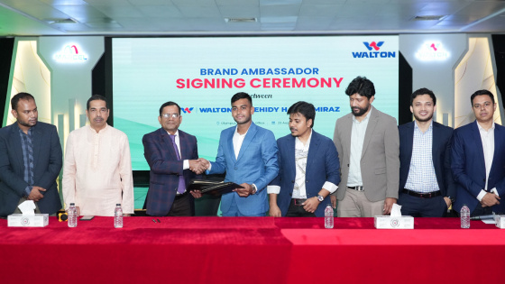 সম্প্রতি রাজধানীর বসুন্ধরায় ওয়ালটন করপোরেট অফিসে মিরাজ ও ওয়ালটনের মধ্যকার এ সংক্রান্ত চুক্তি সই হয়। চুক্তিতে সই করেন মেহেদী হাসান মিরাজ ও ওয়ালটন হাই-টেক ইন্ডাস্ট্রিজ পিএলসির ডেপুটি ম্যানেজিং ডিরেক্টর (ডিএমডি) নজরুল ইসলাম সরকার।