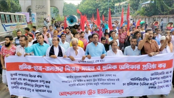 শুক্রবার (১৬ আগস্ট) বিকেলে রাজধানীর জাতীয় প্রেস ক্লাবের সামনে নির্মিত মঞ্চে শ্রমিক জনসভায় ‘শ্রমিক-ছাত্র-জনতার বিজয় সংহত ও শ্রমিক অধিকার প্রতিষ্ঠা কর’ ব্যানারে আয়োজিত এক অনুষ্ঠানে তিনি এ বক্তব্য দেন।