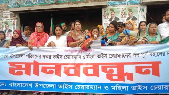অপসারিত পদ ফিরে পাওয়ার দাবিতে মানববন্ধন করছেন দেশের সব উপজেলা পরিষদের ভাইস চেয়ারম্যান ও মহিলা ভাইস চেয়ারম্যানরা।
