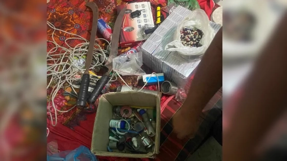 আটকরা হলেন- রেজওয়ানুল ইসলাম (২৩) ও মো. মাহমুদুল ইসলাম (২৬)। এ সময় তাদের কাছ থেকে ২ বোতল গ্যাস ক্যান, অটো সুইচ, মরিচ বাতি, ২টা রাম দা, বারুদ, দিয়াশলাই, ক্যাপাসিটর, রিমোট কন্ট্রোল চাবি, ঘড়ি, জিআই পাইপ, সকেট, সুইচ, ওজন মাপার মেশিন, বল বিয়ারিং, তারকাটা, বৈদ্যুতিক তার, স্কচটেপ, চিমটাসহ অন্যান্য উপকরণ জব্দ করা হয়।