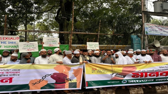 পাঠ্যপুস্তক সংশোধন কমিটি থেকে ইসলামবিদ্বেষী দুই সদস্য অপসারণ এবং ইসলামি স্কলার অন্তর্ভুক্তির দাবিতে মানববন্ধন করেছে সচেতন নাগরিক সমাজ। বৃহস্পতিবার (২৬ সেপ্টেম্বর) দুপুরে জাতীয় প্রেস ক্লাবের সামনে এই মানববন্ধন অনুষ্ঠিত হয়।