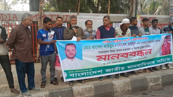 দক্ষিণ আফ্রিকা প্রবাসী রেমিট্যান্স যোদ্ধা মো. রাসেল মাহমুদ, বিশিষ্ট সমাজসেবক মো. নোবেল মাহমুদ এবং তাদের পরিবারের বিরুদ্ধে ‘ষড়যন্ত্রমূলক মিথ্যা’ মামলা প্রত্যাহার ও মুক্তি দাবিতে রাজধানীতে মানববন্ধন অনুষ্ঠিত হয়েছে।