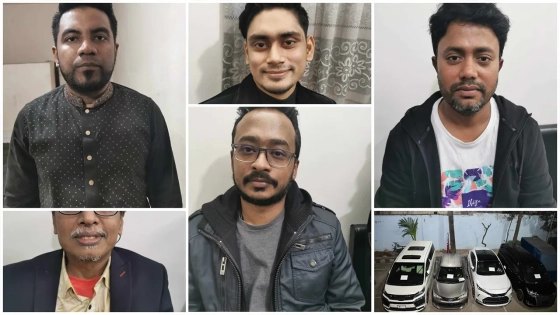 গ্রেপ্তাররা হলেন- জারাক আহমেদ (৩৮), আবুল কালাম রিফতিয়ার (৩৮), মো. জামির হোসেন (৩৬), মো. সজল আহম্মেদ (৩০) ও আব্দুর রহমান রুবেল (৫৬)।