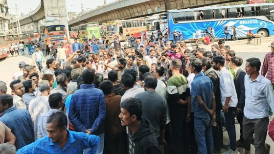 প্রত্যক্ষদর্শীরা জানান, সকাল সাড়ে ১০টা থেকে সায়েদাবাদ এলাকায় জনপদের মোড়ে পরিবহন শ্রমিকরা জড়ো হতে শুরু করেন। প্রায় শতাধিক শ্রমিকের জমায়েত হওয়ার পর তারা সড়ক অবরোধ করে বিক্ষোভ শুরু করেন। এতে সায়েদাবাদ-যাত্রাবাড়ী সড়কে যানবাহন চলাচল বন্ধ হয়ে যায়।