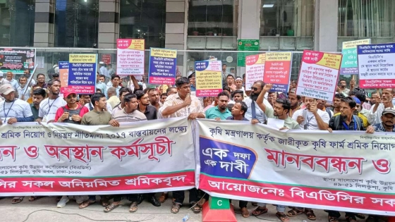 বাংলাদেশ কৃষি উন্নয়ন করপোরেশনের (বিএডিসি) অনিয়মিত শ্রমিকদের নিয়মিত করাসহ ৯ দফা দাবিতে বিক্ষোভ কর্মসূচি পালন করা হয়েছে। এ সময় সারা দেশ থেকে আসা অনিয়মিত শ্রমিকরা বিএডিসি কার্যালয়ের সামনে অবস্থান করেন। পরে তারা সংস্থাটির চেয়ারম্যান রুহুল আমিন খান বরাবর একটি স্মারকলিপি দেন।