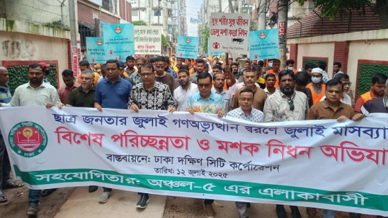 ছাত্র-জনতার গণঅভ্যুত্থান স্মরণে জুলাই মাসব্যাপী কর্মসূচির অংশ হিসেবে ঢাকা দক্ষিণ সিটি করপোরেশন (ডিএসসিসি) বিশেষ পরিচ্ছন্নতা ও মশক নিধন অভিযান পরিচালনা করছে।