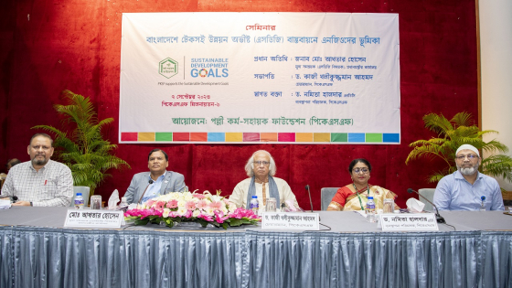 বৃহস্পতিবার (৭ সেপ্টেম্বর) ঢাকার আগারগাঁওস্থ পল্লী কর্ম-সহায়ক ফাউন্ডেশন (পিকেএসএফ) ভবনে ‘বাংলাদেশে টেকসই উন্নয়ন অভীষ্ট (এসডিজি) বাস্তবায়নে এনজিওদের ভূমিকা’ শীর্ষক একটি সেমিনারে প্রধান অতিথি হিসেবে বক্তব্য রাখেন। অনুষ্ঠানে সভাপতিত্ব করেন পিকেএসএফর চেয়ারম্যান ড. কাজী খলীকুজ্জমান আহমদ এবং স্বাগত বক্তব্য প্রদান করেন পিকেএসএফর ব্যবস্থাপনা পরিচালক ড. নমিতা হালদার এনডিসি।