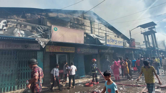 দুবাই জুয়েলার্সের মালিক আমির হোসেন জানান, তার দুটি জুয়েলার্সের দোকান ছিল। ভোর চারটায় খবর পেয়ে মার্কেটে আসসেন তিনি। তখনও তার দোকানে আগুন লাগেনি। মার্কেট বন্ধ থাকায় মালামাল সব সরাতে পারেননি।