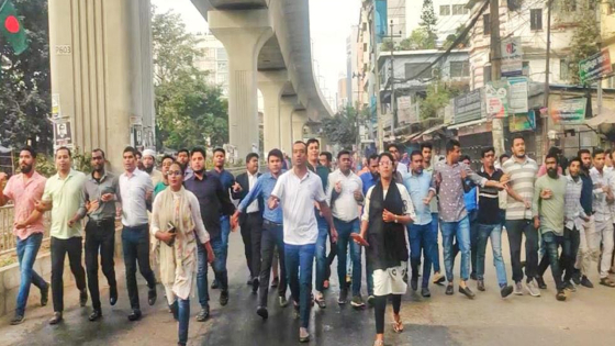 মিছিলে নেতৃত্ব দেন ছাত্রদলের কেন্দ্রীয় সিনিয়র যুগ্ম সাধারণ সম্পাদক রাকিবুল ইসলাম রাকিব। এ সময় নেতাকর্মীরা সড়ক অবরোধের সপক্ষে বিভিন্ন স্লোগান দিতে দেখা যায়। সড়ক অবরোধকালে দৈনিক বাংলা মোড় থেকে পুলিশ তাদের ধাওয়া দিলে তারা ছত্রভঙ্গ হয়ে যায়। বিক্ষোভে উপস্থিত ছিলেন ছাত্রদলের কেন্দ্রীয় যুগ্ম সাধারণ সম্পাদক সজীব মজুমদার, সহসাধারণ সম্পাদক সাঈদ আহমেদ, আল মামুন, জামিল মুরসালিন, বেসরকারি বিশ্ববিদ্যালয় বিষয়ক সম্পাদক মশিউর রহমান, নাট্য বিষয়ক সম্পাদক এনামুল হক এনাম, সদস্য মো. অলিউজ্জামান সোহেল, জগন্নাথ বিশ্ববিদ্যালয় ছাত্রদলের সহসভাপতি মহিউদ্দিন রুবেল, বেসরকারি বিশ্ববিদ্যালয় ছাত্রদলের সহসভাপতি কাওছার আহম্মেদ রনি, সোহাগ চৌধুরী, সাকিব সরকার মাসুম, বেসরকারি বিশ্ববিদ্যালয় ছাত্রদলের যুগ্ম সাধারণ সম্পাদক সেলিম মাহমুদ, রাকিব হোসেন খান, সুলতানা আক্তার মিম, সহনাট্য বিষয় সম্পাদক মুনতাসীর মামুন, ঢাকা কলেজ ছাত্রদলের সহসভাপতি ইব্রাহিম কার্দী, পিয়াল হাসান, শাহাদাত হোসেন মানিক, সহ সাধারণ সম্পাদক শামীম শেখ, তিতুমীর কলেজ ছাত্রদলের সহসভাপতি সেলিম রেজা, যুগ্ম সাধারণ সম্পাদক মো. রিয়াজুল ইসলাম রিয়াজ, শাহীন আল মাহমুদ, জাকির হোসেন, আকরাম হোসেন টুটন, সাবেক সহসাধারণ সম্পাদক আব্দুল আজিজ, সহসাধারণ সম্পাদক আনিছুর রহমান, সহসাংগঠনিক সম্পাদক মিমনুর রহমান, পরিবেশ ও জলবায়ু বিষয়ক সম্পাদক জহিরুল ইসলাম ইয়ামিন, তিতুমীর কলেজ ছাত্রদলের খোকা আহম্মেদ, কবি নজরুল সরকারি কলেজ ছাত্রদলের সহসভাপতি মো. মজিবুল হক রিপন, শাহাদাত হোসেন শাহেদ, যুগ্ম সাধারণ সম্পাদক মেহেদী হাসান আবির ও আব্দুর রহিম, ঢাকা মহানগর উত্তর ছাত্রদলের জসিম উদ্দিন, শামছুল আলম খান সোয়েব, ঢাকা মহানগর পূর্ব ছাত্রদলের সাদিকা তামান্না রেমি, আবু সুফিয়ান, জাহিদুল ইসলাম জাহিদ, মাহমুদ বিন কবির, রাসেল হোসেন, ঢাকা মহানগর দক্ষিণ ছাত্রদলের জামিল সিদ্দিকী, মো. টগর প্রধান, মো. রাসেল,জাহিদ হোসেন ফাহিম, হাম্মাদুর রহমানসহ প্রায় শতাধিক বিভিন্ন ইউনিটের নেতা-কর্মীরা উপস্থিত ছিলেন।