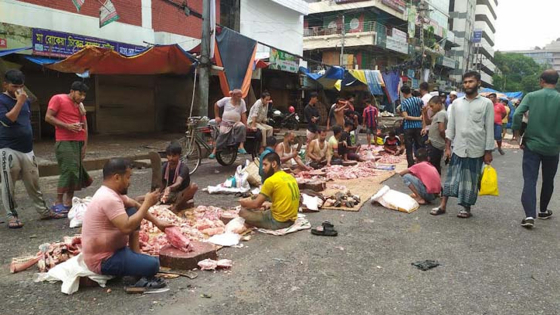 তিনি বলেন, ‘প্রতিবছর কোরবানির ঈদের দিন কসাইয়ের কাজ করি। এ বছর শিয়া মসজিদ এলাকায় গরু কেটেছি। সেখান থেকে মাংস দিছে। সেটাই বিক্রি করছি।'