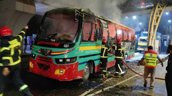 স্থানীয়রা জানায়, হঠাৎ করে দুর্বৃত্তরা রজনীগন্ধা পরিবহনের বাসে আগুন দেয়। পরে খবর পেয়ে সিদ্দিক বাজার ফায়ার স্টেশনের ২টি ইউনিট কাজ করে। আগুন নিয়ন্ত্রণে আনে।