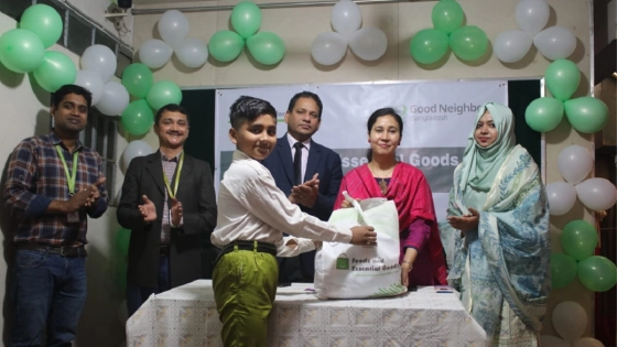 রাজধানীর মিরপুর এলাকার নিম্ন আয়ের পরিবারের বিদ্যালয়গামী ৩০০ শিশুর মাঝে পুষ্টিকর খাদ্য উপকরণ ও অন্যান্য প্রয়োজনীয় সামগ্রী বিতরণ করেছে আন্তর্জাতিক স্বেচ্ছাসেবী বেসরকারি উন্নয়ন সংস্থা গুড নেইবারস।