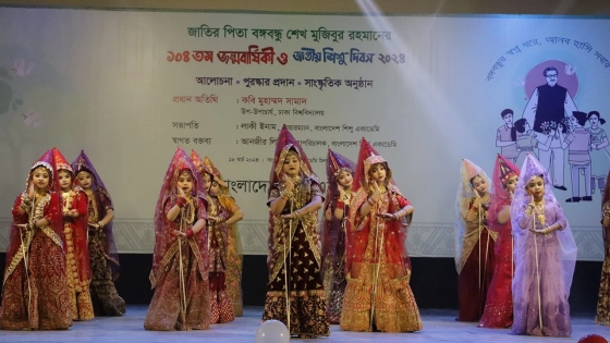 জাতির পিতা বঙ্গবন্ধু শেখ মুজিবুর রহমানের ১০৪ তম জন্মবার্ষিকীতে বাংলাদেশ শিশু একাডেমি মিলনায়তনে আলোচনা, পুরস্কার প্রদান ও সাংস্কৃতিক অুনষ্ঠান আয়োজিত হয়েছে। জাতীয় শিশু দিবসের এ আয়োজনের অংশ হিসেবে সোমবার (১৮ মার্চ) বিকেলে পুতুল নাচ পরিবেশনা করেন ব্রাহ্মণবাড়িয়া জেলার সূর্যমুখী কিন্ডারগার্টেন স্কুলের শিশুশিল্পীরা।