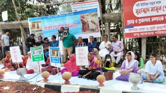 শুক্রবার (২২ মার্চ) সকালে জাতীয় প্রেসক্লাবের সামনে বিশ্ব পানি দিবস-২০২৪ উপলক্ষে নাগরিক সংগঠন সুন্দরবন ও উপকূল সুরক্ষা আন্দোলন আয়োজিত ‘খালি কলসি হাতে নারীদের অবস্থান কর্মসূচিতে এ সব কথা বলেন তারা।