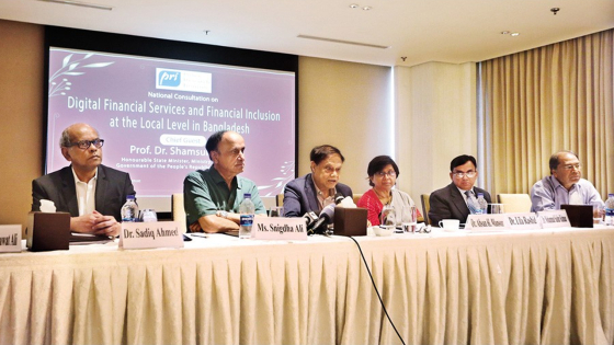 রাজধানীর হোটেল শেরাটনে পলিসি রিসার্চ ইনস্টিটিউটের (পিআরআই) আয়োজনে ‘ডিজিটাল ফাইন্যান্সিয়াল সার্ভিসেস অ্যান্ড ফাইন্যান্সিয়াল ইনক্লুশন অ্যাট দ্যা লোকাল লেভেল ইন বাংলাদেশ’ শীর্ষক জাতীয় পরামর্শ সভায় বক্তারা এসব কথা বলেন।