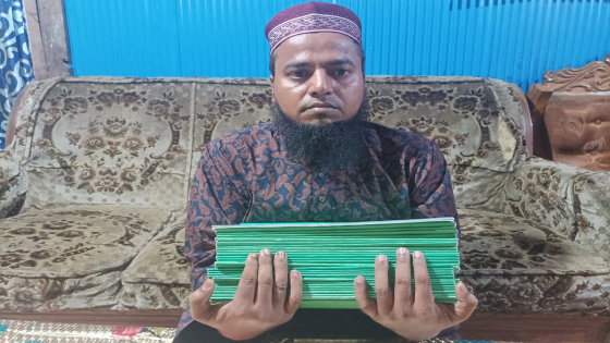তিনি বলেন, চলতি বছরের আগস্ট মাসের ৪ তারিখ থেকে শুরু করি কোরআন লেখা এবং শেষ হয় অক্টোবর মাসের ১৮ তারিখ। মোট দুই মাস ১৪ দিন সময় লেগেছে ৩০ পারা কোরআন লিখতে। প্রতিদিন ৯ থেকে ১০ ঘণ্টা সময় এই কোরআন শরিফ লিখতে ব্যয় করতাম। কখনো কখনো কোরআন শরিফটি লিখতে লিখতে কখন যে রাত ২-৩ টা বেজে যেত টের পেতাম না।