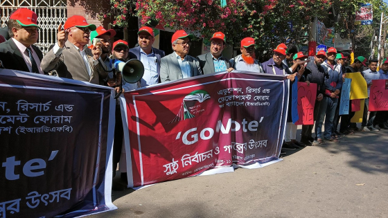 চট্টগ্রামে ‘গো ভোট’ র্যালি করেছে শিক্ষা গবেষণা ও উন্নয়ন ফোরাম বাংলাদেশ (ইআরডিএফবি)। আগামী ৭ জানুয়ারির নির্বাচনে বিশ্ববিদ্যালয়ের তরুণ শিক্ষার্থীদের সুষ্ঠু নির্বাচন ও গণতন্ত্রের উৎসব পালনের আহ্বান জানিয়ে এ র্যালির আয়োজন করেছে সংগঠনটি।