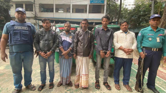 গ্রেপ্তারকৃতরা হলেন, মো. বাবুল, মোস্তাফিজুর রহমান মিঠু, মো. জসীম, মো. দেলোয়ার ও রফিকুল ইসলাম।