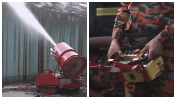 ফায়ার সার্ভিসের কর্মকর্তারা জানান, অত্যাধুনিক যন্ত্র লুফ ৬০ দিয়ে রিমোটের সাহায্যে আগুন নিয়ন্ত্রণের চেষ্টা করা হচ্ছে। এতে সহযোগিতা করছেন ১২-১৫জন ফায়ার সার্ভিসের সদস্যরা। প্রতি মিনিটে ১ হাজার লিটার খুব স্পিডে মারা হচ্ছে। এটির সক্ষমতা প্রতি মিনিটে ৩ হাজার লিটার। আমরা ইচ্ছা করলে আরও দূরবর্তী স্থান থেকেও এ যন্ত্র কন্ট্রোল করা যাবে।