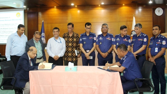 পুলিশ স্টাফ কলেজ বাংলাদেশের রেক্টর ড. মল্লিক ফকরুল ইসলাম এবং সাউথইস্ট ইউনিভার্সিটির উপাচার্য অধ্যাপক ড. ইউসুফ মাহবুবুল ইসলাম স্ব স্ব প্রতিষ্ঠানের পক্ষে সমঝোতা স্মারকে স্বাক্ষর করেন।