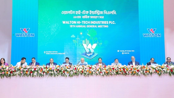 পুঁজিবাজারে প্রকৌশল খাতে তালিকাভুক্ত ওয়ালটন হাই-টেক ইন্ডাস্ট্রিজ পিএলসর ১৮তম বার্ষিক সাধারণ সভা (এজিএম) সফলভাবে অনুষ্ঠিত হয়েছে। প্রাতিষ্ঠানিক বিনিয়োগকারীসহ বিপুল সংখ্যক সাধারণ শেয়ারহোল্ডারদের উপস্থিতিতে মঙ্গলবার (২৯ অক্টোবর, ২০২৪) রাজধানীর কুর্মিটোলা গলফ ক্লাবে ওই সভা অনুষ্ঠিত হয়েছে।