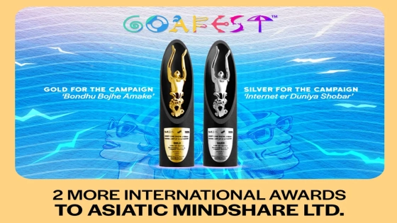 দক্ষিণ এশিয়ার সবচেয়ে বড় অ্যাডভার্টাইজিং ফেস্টিভ্যাল ‘গোয়াফেস্ট’-এর অ্যাবি অ্যাওয়ার্ডসে ‘ইনোভেটিভ ইউজ অব ইন্টিগ্রেটেড মিডিয়া, সাউথ এশিয়া (এক্সক্ল্যুডিং ইন্ডিয়া)’ ক্যাটেগরিতে একটি সিলভার এবং একটি গোল্ড অ্যাওয়ার্ড জিতে নিয়েছে এশিয়াটিক মাইন্ডশেয়ার।