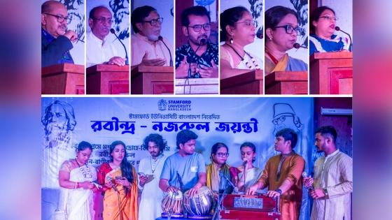 হৃদয়গ্রাহী এই বানী সামনে রেখে স্টামফোর্ড ইউনিভার্সিটি বাংলাদেশ নিবেদিত ও স্টামফোর্ড ইউনিভার্সিটি ড্রামা সোসাইটির আয়োজনে উদযাপিত হল ‘রবীন্দ্র-নজরুল জয়ন্তী ১৪৩২’। বুধবার (২৮ মে) ইউনিভার্সিটির অডিটোরিয়ামে বিকেল ৩টায় অনুষ্ঠিত হয় ‘রবীন্দ্র-নজরুল জয়ন্তী ১৪৩২’। বাঙালি সংস্কৃতি ও সাহিত্যের দুই মহান কবিকে স্মরণ তাদের সৃষ্টিকে ঘিরে গড়ে ওঠা এই আয়োজনে ছিল গভীর শ্রদ্ধা, আবেগ ও সৃজনশীল প্রকাশের অনন্য সংযোজন।