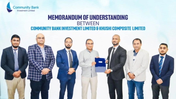 কমিউনিটি ব্যাংক বাংলাদেশ পিএলসির সম্পূর্ণ মালিকানাধীন সহযোগী প্রতিষ্ঠান; কমিউনিটি ব্যাংক ইনভেস্টমেন্ট লিমিটেডকে খুশি কম্পোজিট লিমিটেডের ২০০ কোটি টাকার সিন্ডিকেশন ফাইন্যান্সিং উদ্যোগের করপোরেট উপদেষ্টা হিসেবে নিযুক্ত করা হয়েছে।
