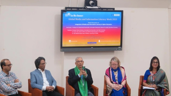 ইস্ট ওয়েস্ট ইউনিভার্সিটির ইনফরমেশন স্টাডিজ বিভাগের উদ্যোগে ২৪ অক্টোবর থেকে ৩১ অক্টোবর ২০২৫ সপ্তাহব্যাপী ‘গ্লোবাল মিডিয়া এন্ড ইনফরমেশন লিটারেসি’ সপ্তাহ উদযাপন চলছে।