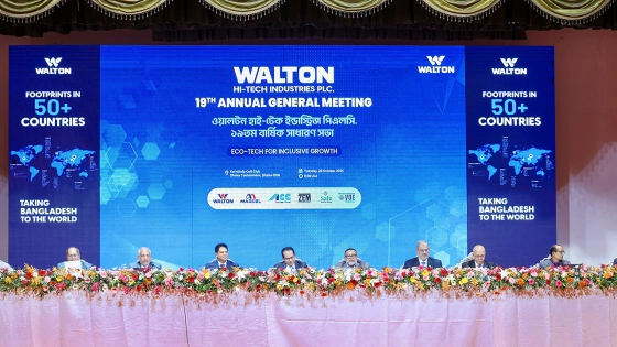 পুঁজিবাজারে তালিকাভুক্ত প্রকৌশল খাতের কোম্পানি, সুপারব্র্যান্ড ও টেক জায়ান্ট ওয়ালটন হাই-টেক ইন্ডাস্ট্রিজ পিএলসি'র ১৯তম বার্ষিক সাধারণ সভা (এজিএম) অনুষ্ঠিত হয়েছে। দেশের রাজনৈতিক অস্থিরতা ও বাণিজ্যিক প্রতিকূলতার মধ্যেও ১৭৫ শতাংশ ক্যাশ ডিভিডেন্ড দেওয়ায় সভায় সন্তুষ্টি প্রকাশ করে ওয়ালটনের পরিচালনা পর্ষদকে ধন্যবাদ জানান সাধারণ বিনিয়োগকারীরা।