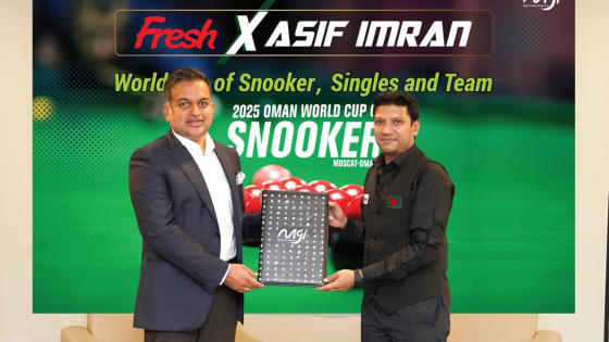 ওমানের মাসকটে অনুষ্ঠেয় প্রথম ওয়ার্ল্ড কাপ অব সুকার, সিঙ্গেলস ও টিম’ এ বাংলাদেশের প্রতিনিধিত্ব করবেন আসিফ ইমরান। বিশ্বমঞ্চে বাংলাদেশের প্রতিনিধিত্ব করার এই যাত্রায় পাশে রয়েছে মেঘনা গ্রুপ অব ইন্ডাস্ট্রিজ (এমজিআই)-এর জনপ্রিয় ব্র্যান্ড ‘ফ্রেশ’।