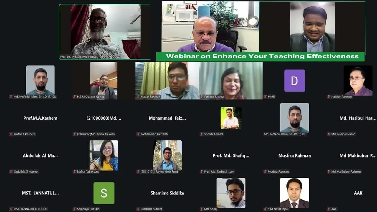 ইন্টারন্যাশনাল স্ট্যান্ডার্ড ইউনিভার্সিটি (আইএসইউ) সোমবার একটি ওয়েবিনারের আয়োজন করে, যেখানে উচ্চশিক্ষায় ইতিবাচক পরিবর্তন আনা এবং শিক্ষকদের পেশাগত দক্ষতা বাড়ানো নিয়ে আলোচনা হয়। একাডেমিক মান উন্নয়নের ধারাবাহিক আয়োজনের অংশ হিসেবে এই সেশনটি অনুষ্ঠিত হয়।
