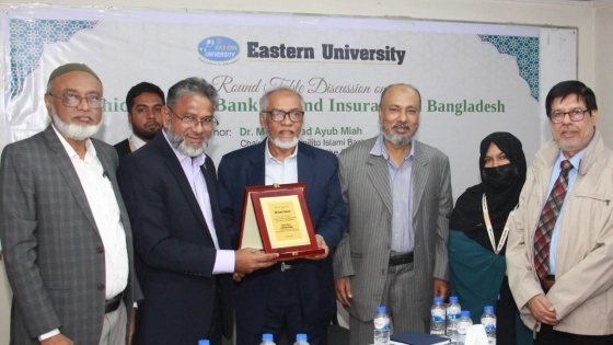 রাজধানীর ধানমন্ডিতে ইস্টার্ন ইউনিভার্সিটির উদ্যোগে “বাংলাদেশে ইসলামী ফাইন্যান্স, ব্যাংকিং ও ইন্স্যুরেন্স” শীর্ষক একটি গোলটেবিল বৈঠক অনুষ্ঠিত হয়েছে। উক্ত অনুষ্ঠানে দেশের শীর্ষ স্থানীয় ব্যাংকার, শরিয়াহ বিশারদ এবং শিক্ষাবিদরা অংশগ্রহণ করেন।