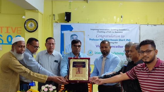 চট্টগ্রামে ইউনিভার্সিটি অফ ক্রিয়েটিভ টেকনোলজি (ইউসিটিসির) নতুন ভাইস-চ্যান্সেলর বীর মুক্তিযোদ্ধা অধ্যাপক ড. মো. জাহিদ হোসেন শরীফকে ইউসিটিসি পরিবারের পক্ষ থেকে সংবর্ধনা দেওয়া হয়েছে।