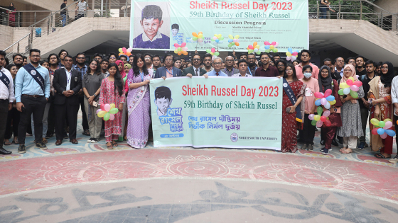 নর্থ সাউথ ইউনিভার্সিটিতে (এনএসইউ) জাতির জনক বঙ্গবন্ধু শেখ মুজিবুর রহমানের কনিষ্ঠ পুত্র শেখ রাসেলের ৬০তম জন্মবার্ষিকী পালিত হয়েছে। ১৯৭৫ সালের ১৫ আগস্ট পিতার পাশাপাশি মর্মান্তিকভাবে প্রাণ হারানো শিশু শহীদ শেখ রাসেলের প্রতি শ্রদ্ধা জানিয়ে ‘শেখ রাসেল দিবস ২০২৩’ উপলক্ষে বিভিন্ন অনুষ্ঠানের আয়োজন করা হয়।