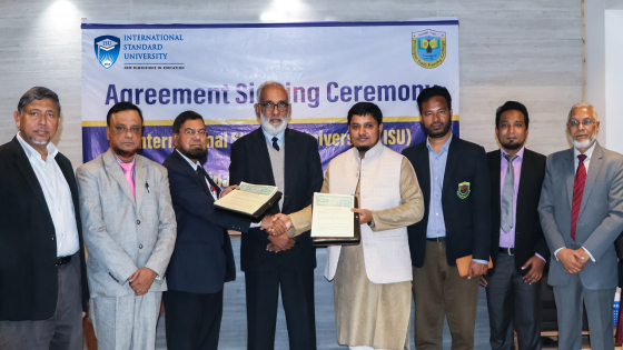 ইন্টারন্যাশনাল স্ট্যান্ডার্ড ইউনিভার্সিটির মহাখালী ক্যাম্পাসে চুক্তি স্বাক্ষর অনুষ্ঠানে ব্যবসায় প্রশাসন বিভাগের অধ্যাপক মোহাম্মদ আলী, আইএসইউ রেজিস্ট্রার মো. ফাইজুল্লাহ কৌশিক, ডিরেক্টর এডমিশন গিয়াস উদ্দিন, পিকেএফএসসি প্রফেসর ইনচার্জ আনিসুর রহমান, স্কুল শাখার প্রধান শিক্ষক মো. সাইফুল ইসলামসহ উভয় প্রতিষ্ঠানের ঊর্ধ্বতন কর্মকর্তারা উপস্থিত ছিলেন।