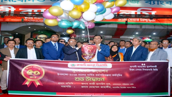 রাষ্ট্র মালিকানাধীন রূপালী ব্যাংকে প্রতিষ্ঠানটির যাত্রা শুরুর ৫০ বছরপূর্তি উৎসব উদযাপন করা হয়েছে। বৃহস্পতিবার (১ ফেব্রুয়ারি) দিলকুশাস্থ ব্যাংকের প্রধান কার্যালয়ে ব্যাংকটির সুবর্ণজয়ন্তী অনুষ্ঠান উদযাপন শেষে এক আড়ম্বরপূর্ণ অনুষ্ঠানের মাধ্যমে ২০২৪ সালের বার্ষিক কর্মপরিকল্পনা কর্মসূচির উদ্বোধন করা হয়। এ সময় ব্যাংকের ম্যানেজিং ডিরেক্টর সব কর্মকর্তা ও নির্বাহীদের সামনে কর্মপরিকল্পনা বিস্তারিতভাবে তুলে ধরেন।